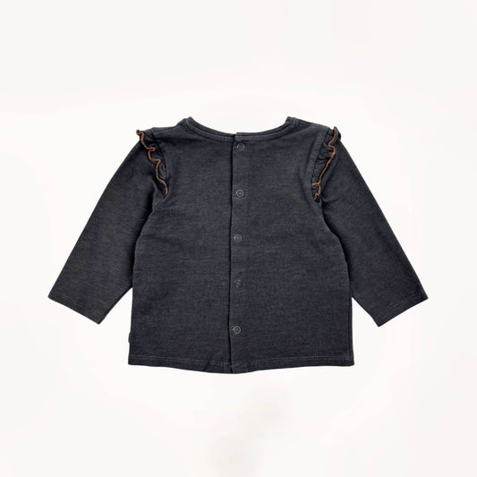 Grijze trui met egel en herfst artwork, frulletjes aan de schouders⎪68