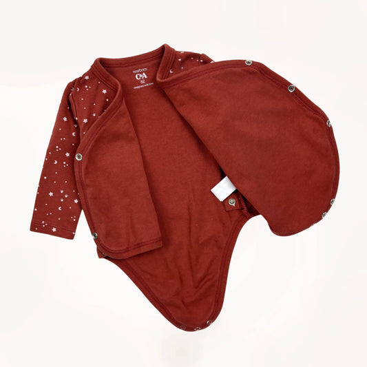Set 2 overslag rompers winter rood & streepjes, lange mouwen, "mommy loves me"⎪62