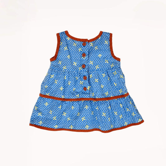 Blauw zomerkleedje met rode biesjes⎪62