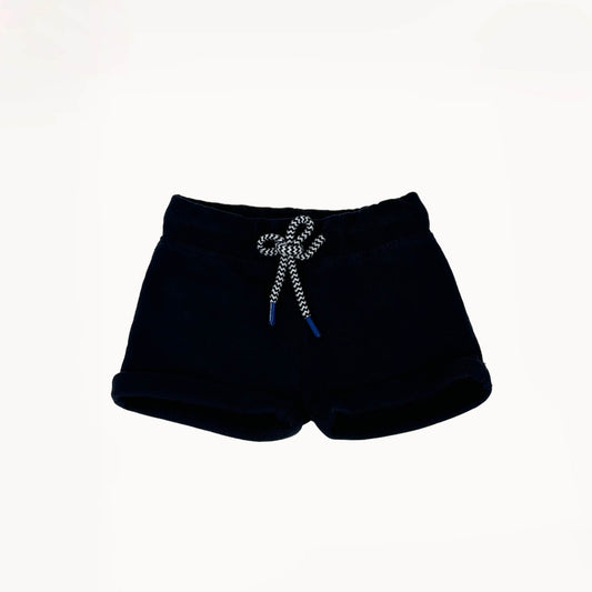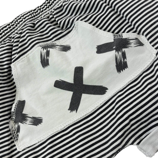 Gestreepte sweatshort zwart,wit m/ buidelzak in kruis-motief⎪92