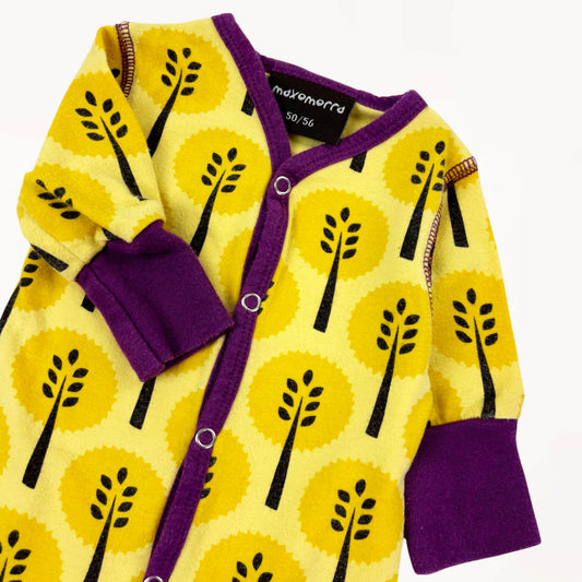 Kleurrijke pyjama geel/paars, boompjes motief ⎪50/56