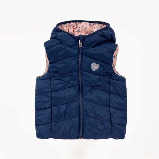 Omkeerbare bodywarmer, navy blauw "Always Cute", roze met bloemenmotief⎪86