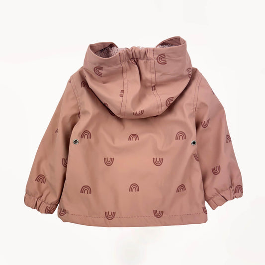 Poederroze regenjas met regenboogjes, gewatteerd met dons⎪80