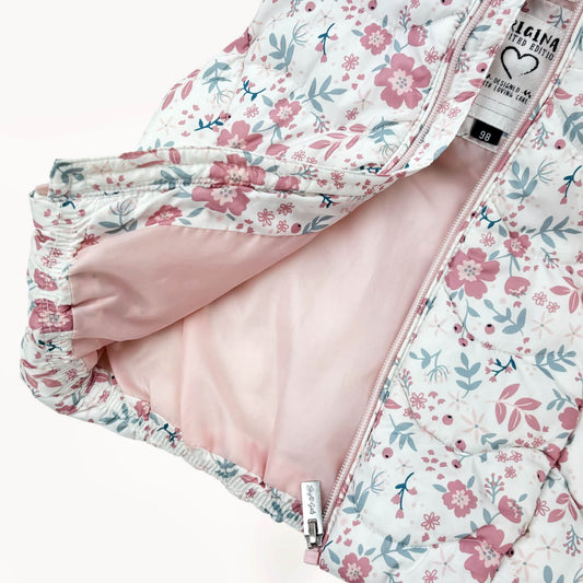Bodywarmer met kap, bloementjes motief, roze voering⎪98