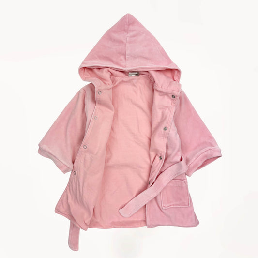 Roze badjas met capuchon en knopen⎪80