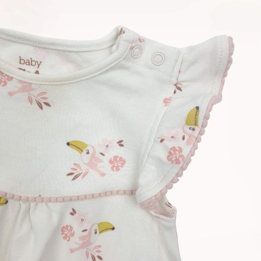 Zacht katoenen rompertje met tropische vogeltjes⎪80
