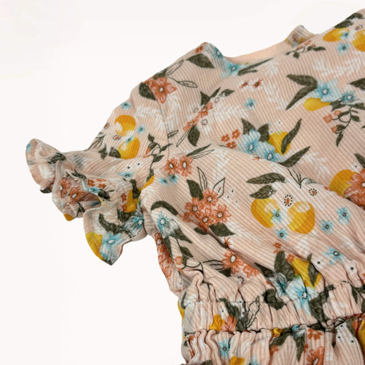 Katoenen zalmkleurig bloemenjurkje⎪74
